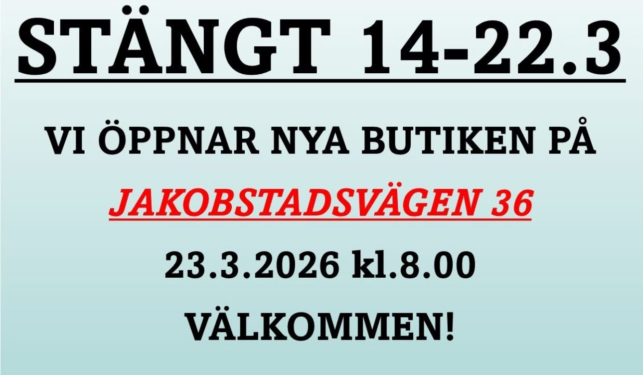 Ostrocenter Nykarleby håller stängt 14.3-22.3 på grund av flytt av butiken.